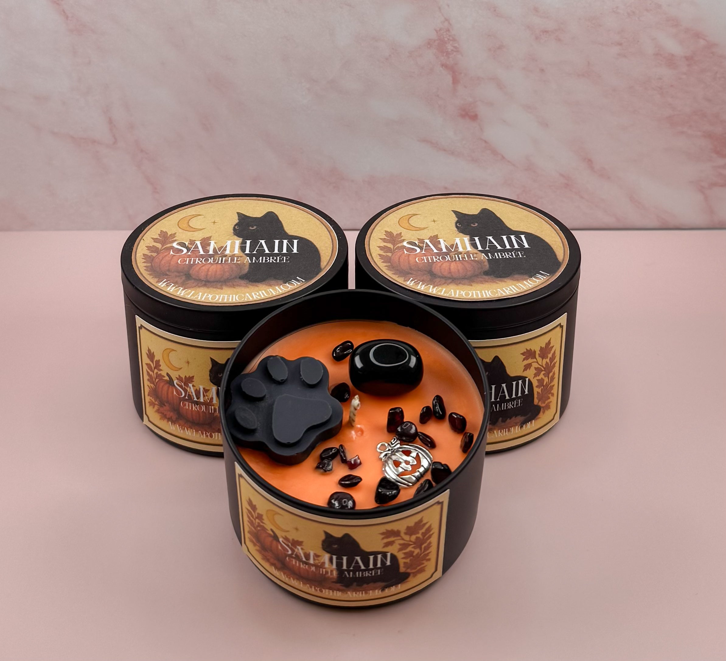 Laissez-vous envoûter par la magie de Samhain avec notre nouvelle bougie aux notes épicées et protectrices.